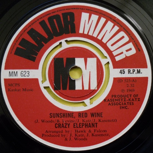The name of Crazy Elephant was really sustained by the minor transatlantic hit "Gimme Gimme Good Lovin'", which hit number 12 in both the USA and the UK in 1969. Once that had produced a few pounds and dollars, the British label Major Minor and the American label Bell kept the records coming in the hope that use of the name would produce another chartbuster. Naturally, this single failed utterly (reaching number 104 in the USA and not even registering in the UK charts) but there's perhaps no good reason why it should have done. "Sunshine Red Wine" is no less pounding and insistent than "Gimme Gimme", and in fact even has a blasting horn section which Rocket From The Crypt would have been pleased to have appearing on one of their records. Crazy Elephant may have been ostensibly regarded as a "bubblegum" group, but there's a roughness to this track which moves it far away from the likes of "Simon Says". Raw blue-eyed soul vocals combine with pounding rhythms to create something which sounded like the natural continuation of the American garage scene, with some of the imperfections scraped away.